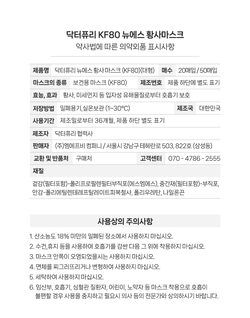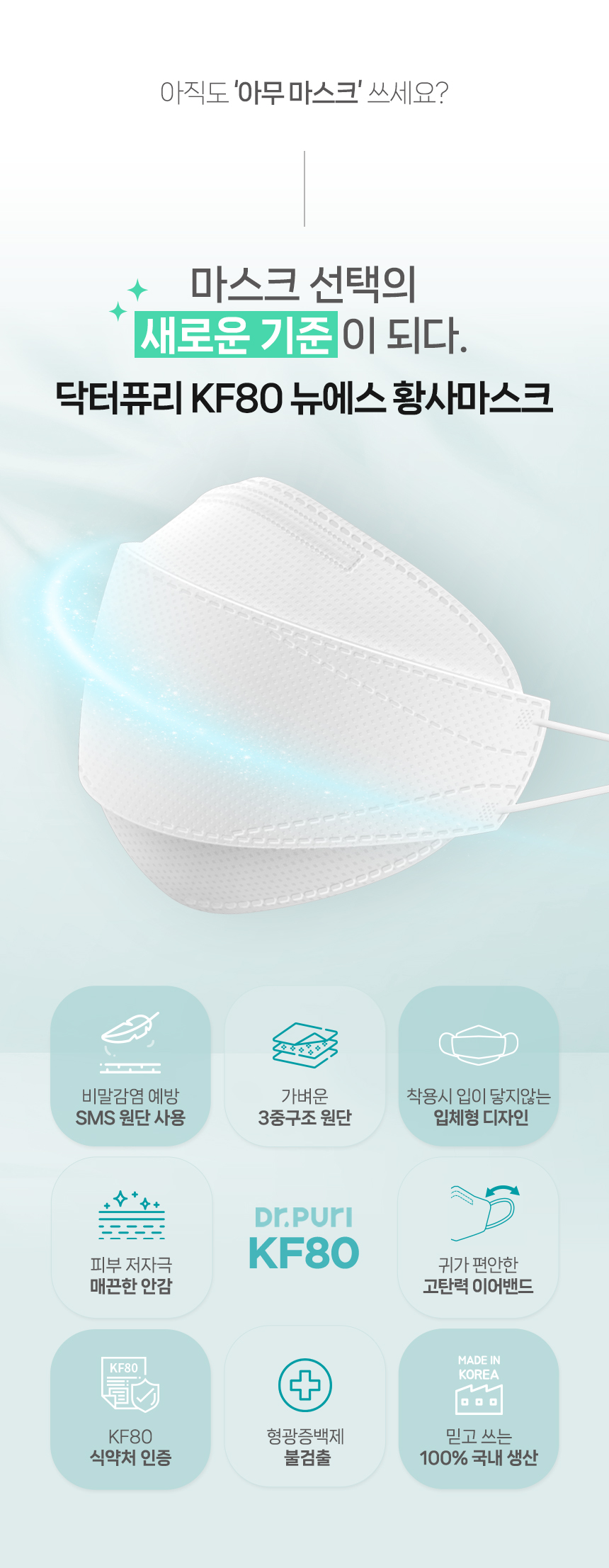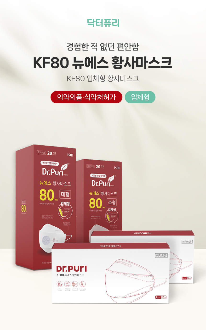 캘린더링 공법으로 피부에 닿는 부드러운 안감과 한층 강화된 필터효율로 숨쉬기 편한 KF-80 입체형 마스크