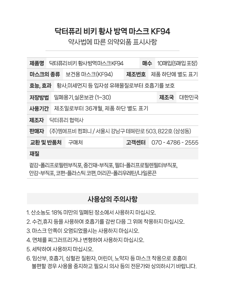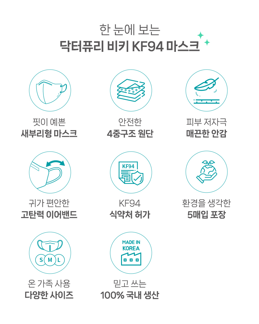 피부 저자극으로 안전한 4중구조 원단으로 핏이 예쁜 새부리형 마스크 KF-94