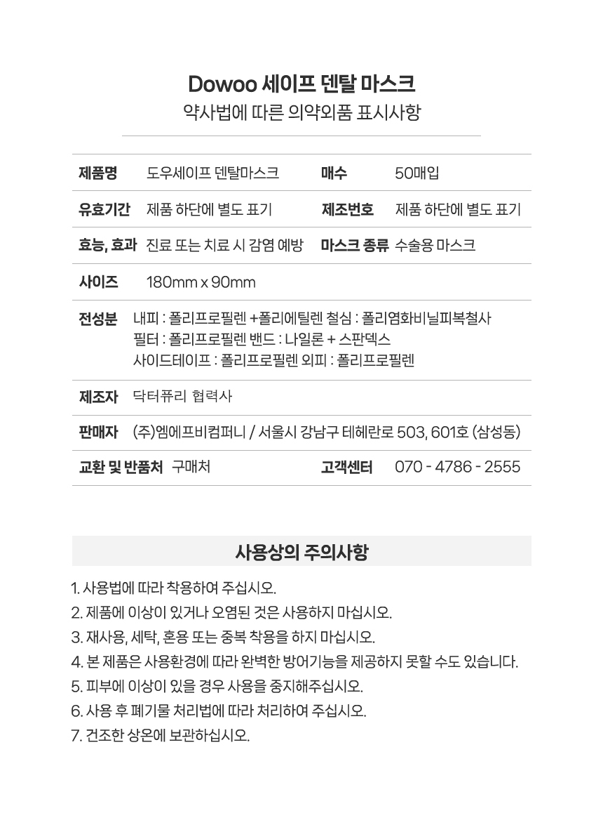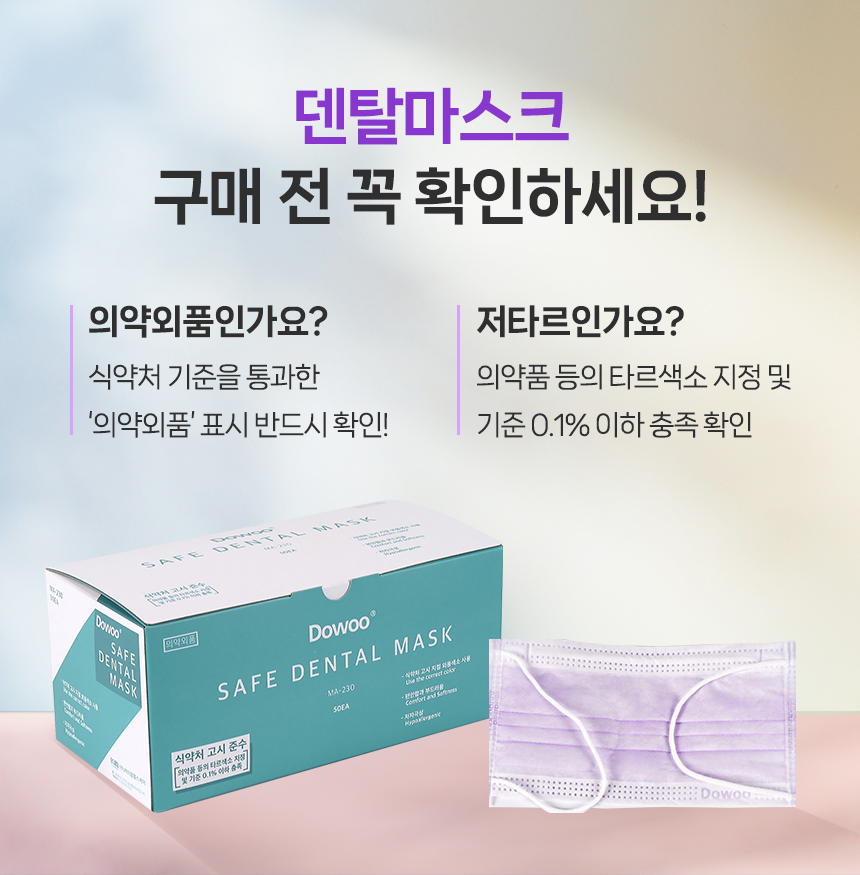 ★대용량특가전★ Dowoo 도우 세이프 덴탈마스크 24case(1200매) 연보라 대용량