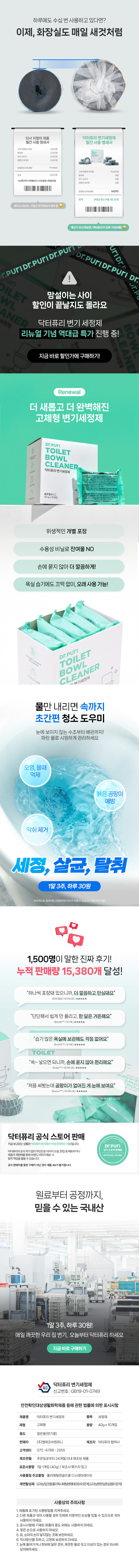 국내산 100%의 균일하게 녹는 변기세정제.