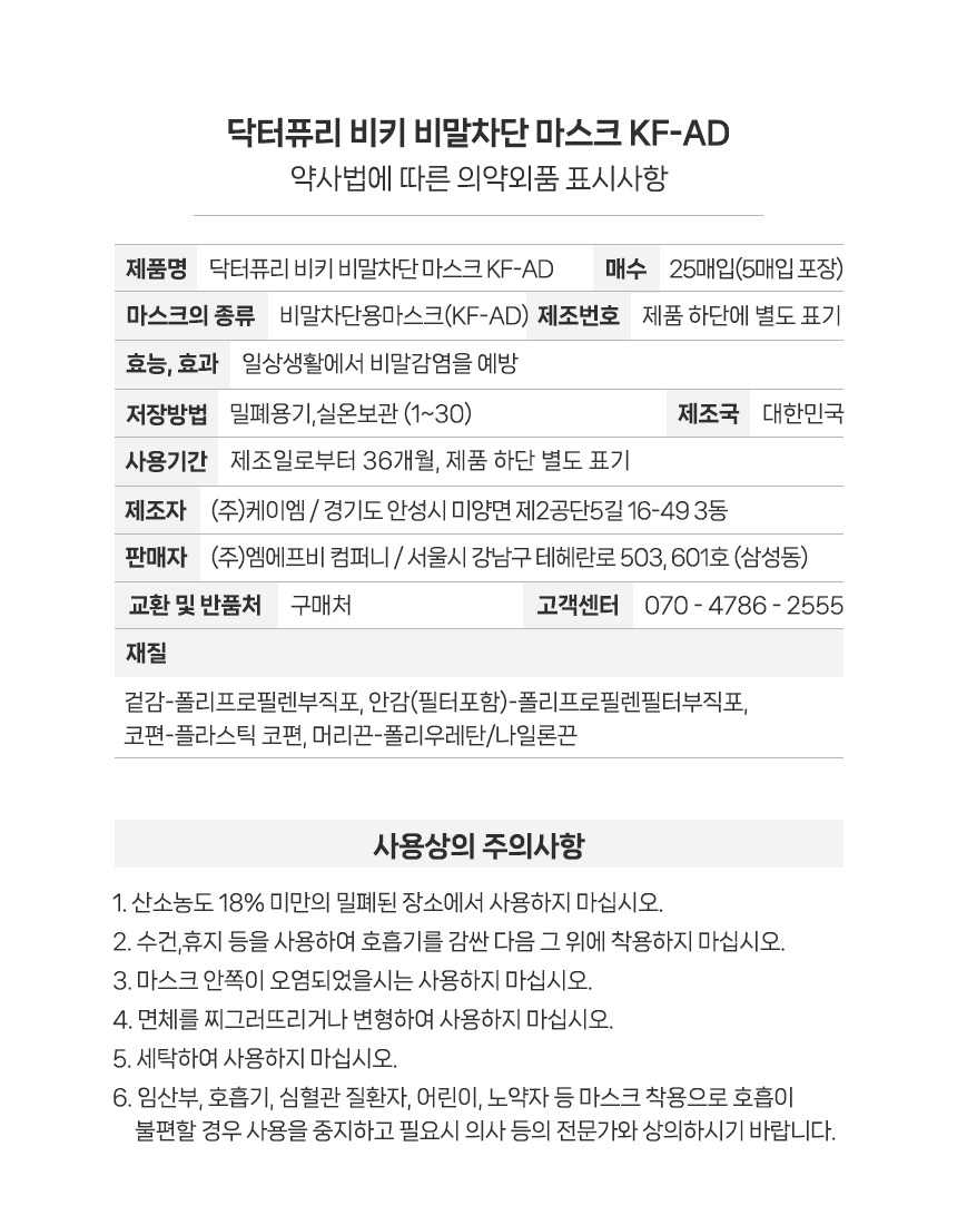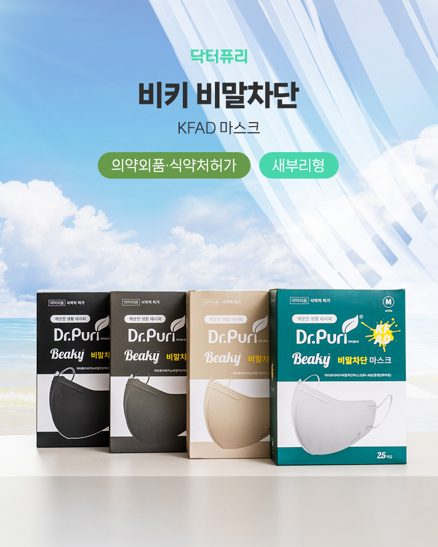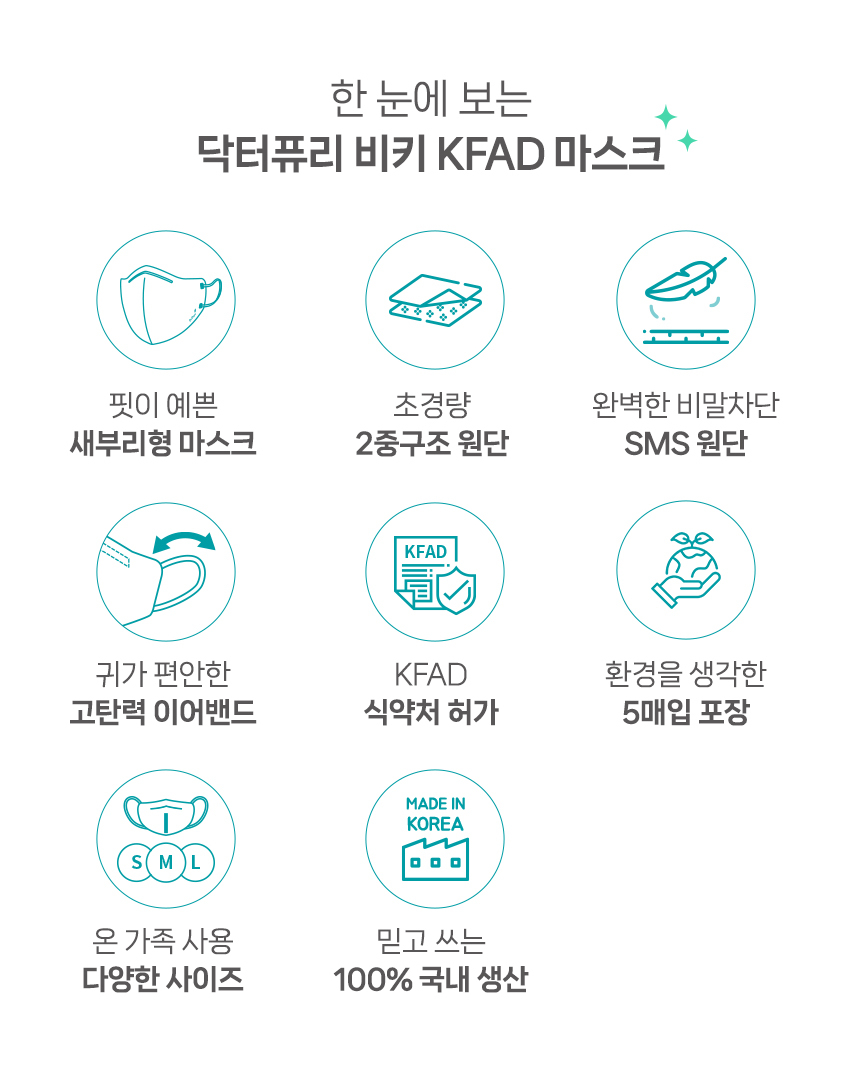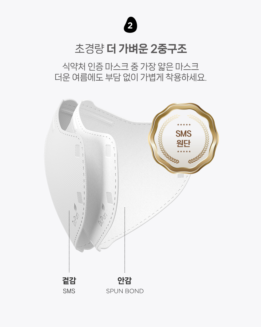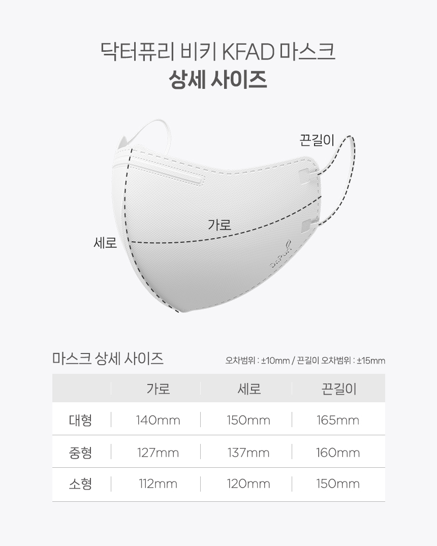 귀가 편한 이어밴드와 피부자극 최소화에 2중 구조로 한결 편안해진 비말감염예방 SMS 원단의 새부리형 입체 마스크 KF-AD