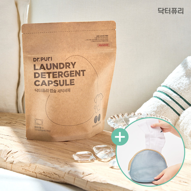 [특판용] 캡슐 세탁세제 8g 파우더향 올인원 알러젠프리 고농축 40개+세탁망 증정
