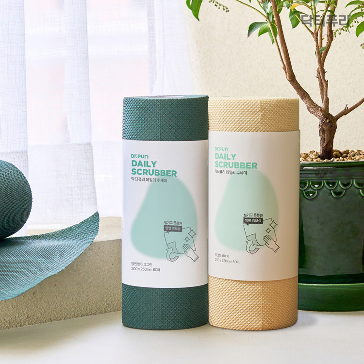 [특판용] 닥터퓨리 데일리 수세미 60매 x 2입 대형 (색상 3종)+극세사 행주 증정