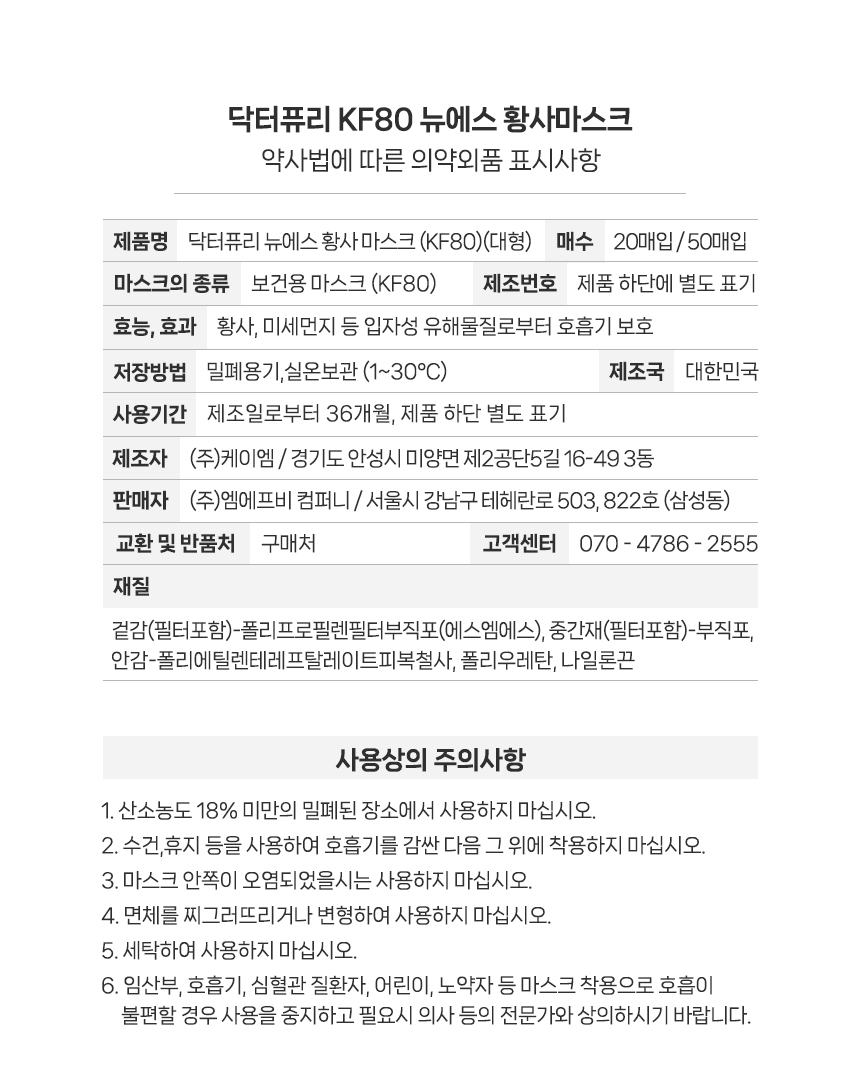 캘린더링 공법으로 피부에 닿는 부드러운 안감과 한층 강화된 필터효율로 숨쉬기 편한 KF-80 입체형 마스크