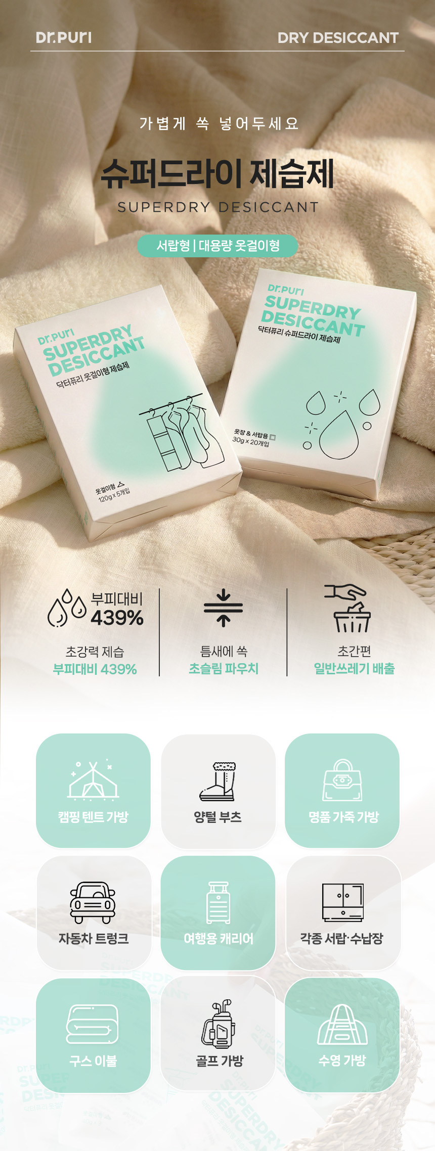 ★대용량특가전★ 슈퍼드라이 걸이형 제습제 120g 5입 x 16세트 1박스