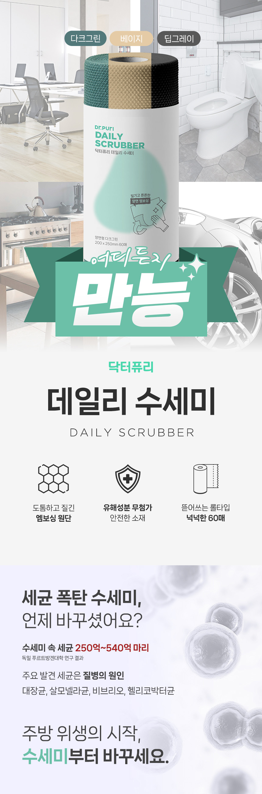[체험딜] 일회용 수세미 소형 60매 (딥그레이, 다크그린)