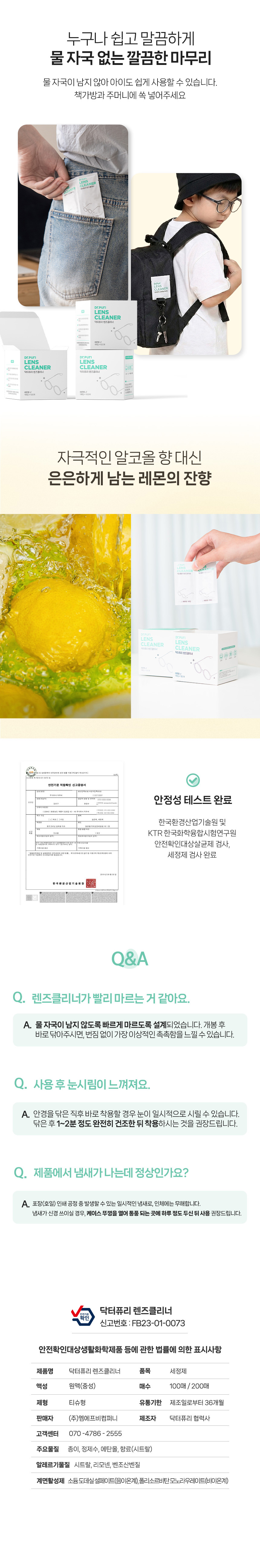 [특판용] 렌즈클리너 일회용 티슈 레몬향 200매입