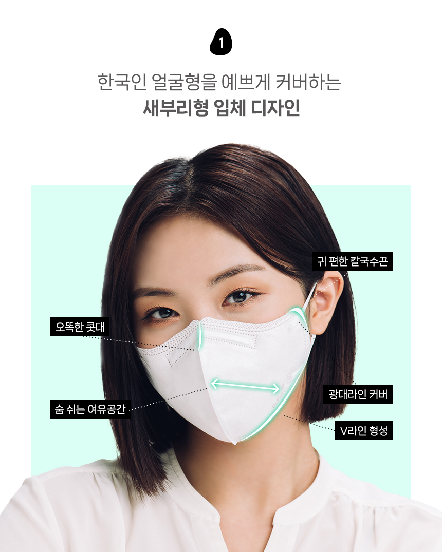 피부 저자극으로 안전한 4중구조 원단으로 핏이 예쁜 새부리형 마스크 KF-94